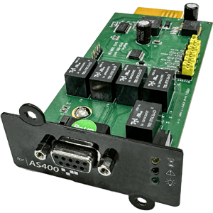 AS400 继电器卡是将“MegaTec”协议的 RS232 信号转换为真正的无电势的干接点信号,通过接点信号的变化实时反映 UPS 的运作状态。